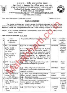 मुलाखतीचा पत्ता- ICAR – केंद्रीय कापूस संशोधन संस्था, हिंदुस्तान एलपीजी डेपो जवळ, पंढरी, वर्धा रोड, नागपूर