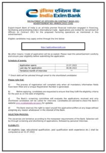 एक्सीम बँक अंतर्गत कंत्राटी अधिकारी या पदांसाठी भरती