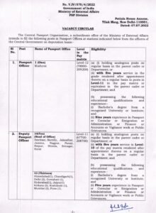 पदाचे नाव- पासपोर्ट अधिकारी, उप पासपोर्ट अधिकारी