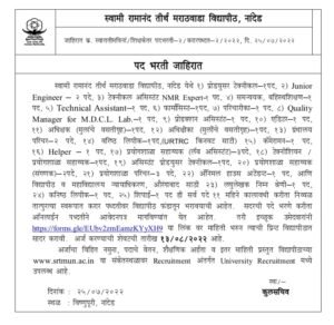 स्वामी रामानंद तीर्थ मराठवाडा विद्यापीठ, नांदेड येथे भरती