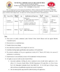 पदाचे नाव- सल्लागार, बालरोग तज्ञ