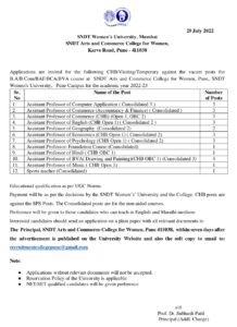 श्रीमती नाथीबाई दामोदर ठाकरसी महिला विद्यापीठात प्राध्यापक पदाची भरती