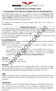 पदाचे नाव- संचालक सह सल्लागार (खाणकाम)