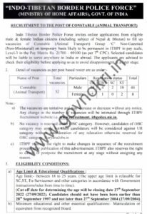 नोकरी विषयी इंडो तिबेट बॉर्डर पोलीस फोर्स(ITBP) मध्ये भरती By Chetan Patil On Aug 10, 2022 0 Share पदाचे नाव- कॉन्स्टेबल एकूण संख्या- 52 जागा शेवटची तारीख- 27 सप्टेंबर 2022 अधिकृत वेबसाइट- www.itbpolice.nic.in 0 Share FacebookTwitterGoogle+ReddItWhatsAppPinterestEmail