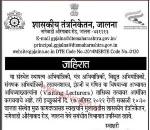 नोकरी विषयी शासकीय तंत्रनिकेतन जालना येथे भरती By Chetan Patil On Aug 10, 2022 0 Share पदाचे नाव- विजिटिंग फैकल्टी नोकरी ठिकाण- जालना निवड प्रक्रिया- मुलाखत मुलाखतीची तारीख- 17 ऑगस्ट 2022 मुलाखतीचा पत्ता- शासकीय तंत्रनिकेतन जालना अधिकृत वेबसाईट- gpjalna.ac.in 0 Share FacebookTwitterGoogle+ReddItWhatsAppPinterestEmail