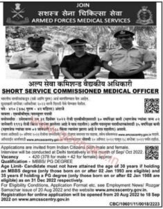 सशस्त्र सेना वैद्यकीय सेवा (AFMC) अंतर्गत भरती