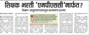 गेल्या काही महिन्यांपासून पवित्र पोर्टल व शासनाच्या अधिकृत संकेतस्थळामार्फत करण्यात येत असलेली राज्यातील शिक्षकांची भरती आता महाराष्ट्र लोकसेवा आयोगाच्या परिक्षेच्या धर्तीवर करण्याचा प्रस्ताव शिक्षण आयुक्तालयाकडून शासनाला सादर करण्यात आला आहे.