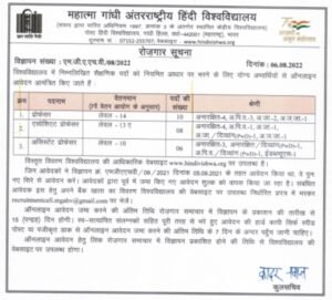 अर्ज करण्याचा पत्ता- रजिस्ट्रार, महात्मा गांधी अंतरराष्ट्रीय हिंदी विद्यापीठ, गांधी हिल्स, वर्धा-442001 (महाराष्ट्र)