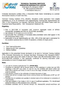 अर्ज सादर करण्याचा पत्ता- तांत्रिक प्रशिक्षण संस्था (TTI), हिंदुस्तान एरोनॉटिक्स लिमिटेड, सुरंजन दास रोड, विमानपुरा पोस्ट, बंगलोर-560017