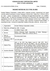 कोकण रेल्वे कॉर्पोरेशन लिमिटेड अंतर्गत भरती