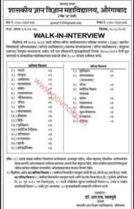 शासकीय कला आणि विज्ञान महाविद्यालय, औरंगाबाद येथे विविध पदांसाठी थेट मुलाखतीद्वारे मोठी भरती