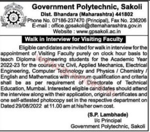 Blue new job button on white keyboard close-up नोकरी विषयी शासकीय तंत्रनिकेतन, साकोली येथे भरती By Chetan Patil On Aug 26, 2022 0 Share पदाचे नाव- विजिटिंग लेक्चरर शैक्षणिक पात्रता- Post Graduate निवड प्रक्रिया- मुलाखत नोकरी ठिकाण- साकोली, जि. भंडारा मुलाखत तारीख- 29 ऑगस्ट 2022 मुलाखतीचा पत्ता- शासकीय तंत्रनिकेतन, साकोली, जि. भंडारा 0 Share FacebookTwitterGoogle+ReddItWhatsAppPinterestEmail