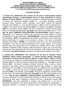 पदाचे नाव- मानववंशशास्त्रज्ञ, सहाय्यक केंद्रीय गुप्तचर अधिकारी, वैज्ञानिक ‘बी’, पुनर्वसन अधिकारी, उपमहासंचालक/ प्रादेशिक संचालक