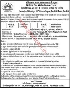 मुलाखतीचा पत्ता- केंद्रीय विद्यालय ISP, नेहरू नगर, नाशिक रोड, महाराष्ट्र पिन- 422101