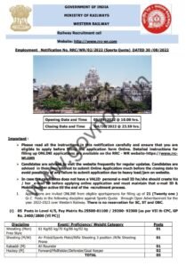 नोकरी विषयी पश्चिम रेल्वे, मुंबई येथे भरती By Chetan Patil On Aug 30, 2022 0 Share पदाचे नाव- गट क शैक्षणिक पात्रता- शैक्षणिक पात्रता जाणून घेण्यासाठी मूळ जाहिरात सविस्तर वाचा रिक्त पदे- 21 पदे अर्ज करण्याची पद्धत- ऑनलाइन शेवटची तारीख- 04 ऑक्टोबर 2022 अधिकृत वेबसईट- www.wr.indianrailways.gov.in 0 Share FacebookTwitterGoogle+ReddItWhatsAppPinterestEmail