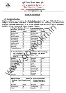 मुलाखतीचा पत्ता- पुणे जिल्हा शिक्षण मंडळ,पुणे (संस्था मुख्य कार्यालय) 48/1 अ, एरंडवणा, पौडरोड, पुणे- 411038 (मामासाहेब मोहोळ महाविद्यालय कॅम्पस्) 48/1 अ, एरंडवणा, पौडरोड, पुणे- 411038
