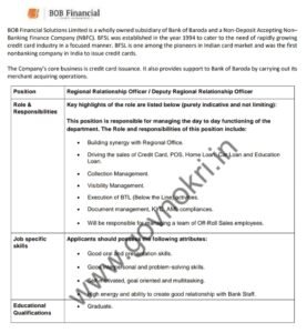 बँक ऑफ बडोदा फायनान्शियल सोल्यूशन लिमिटेड अंतर्गत भरती