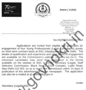 अर्ज करण्याचा पत्ता- अवर सचिव (कायदेशीर), कर्मचारी निवड आयोग, ब्लॉक नं.12, सीजीओ कॉम्प्लेक्स, लोधी रोड, नवी दिल्ली-11-0 003 gl.meena66@gov.in