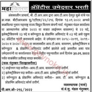 ITI उत्तीर्ण विद्यार्थ्यांना संधी; महावितरण विभाग नंदुरबार येथे भरती