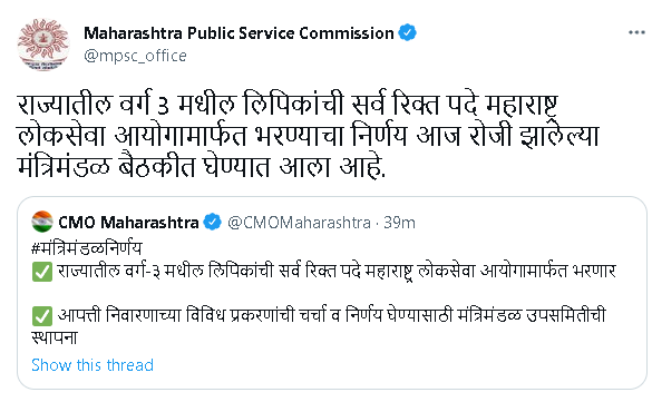 राज्यातील वर्ग 3 मधील लिपिकांची सर्व रिक्त पदे MPSC मार्फत भरण्याचा निर्णय