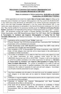 पदाचे नाव- हेड कॉन्स्टेबल (मंत्रिपद) आणि असिस्टंट सब इन्स्पेक्टर (स्टेनोग्राफर).