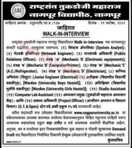 मुलाखतीचा पत्ता- राष्ट्रसंत तुकडोजी महाराज नागपूर विद्यापीठ, नागपूर