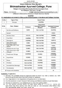 अर्ज करण्याचा पत्ता- The Principal, Adarsh Shikshan Vikas Mandal’s Bhimashankar Ayurved College, wadgaon Kashimbeg (Walunjwadi), Manchar Ghodegaon Road, Tal. Ambegaon, Dist. Pune- 410 503