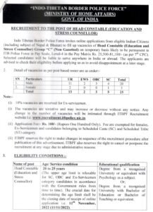 इंडो-तिबेट बॉर्डर पोलिस फोर्स(ITBP) मध्ये भरती