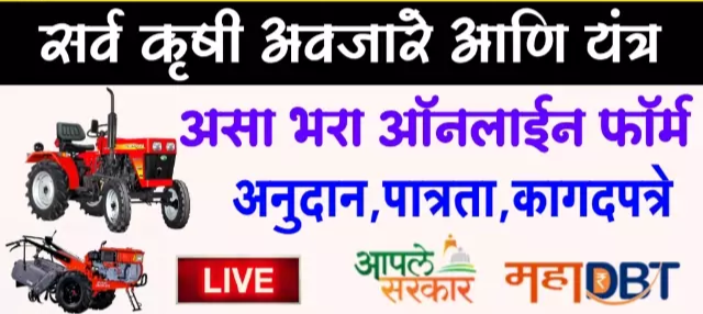 महाडीबीटी पोर्टलवर कृषि यंत्र / अवजारे यांच्या