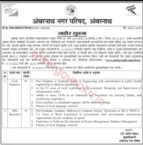 अंबरनाथ नगर परिषदेत मुलाखती द्वारे भरती