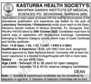महात्मा गांधी वैद्यकीय विज्ञान संस्था, वर्धा येथे विविध पदांची भरती