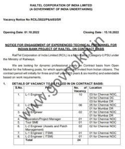 अर्ज करण्याचा पत्ता- RailTel Corporation of India Ltd., No: 275E, 4 th Floor, EVR Periyar High Road, Office Of the Chief Administrative Office, Southern Railway, Egmore, Chennai- 600 008.