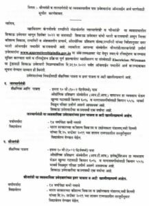 शैक्षणिक पात्रता:- ०१) इयत्ता १० वी (१०+२ पॅटर्नमध्ये) पास ०२) औद्योगिक प्रशिक्षण संस्थेतील (आय.टी.आय.) इलेक्ट्रीशिअन हा व्यवसाय घेऊन खुल्या गटासाठी किमान ६०% व मागासवर्गीयांसाठी किमान ५५% मार्क्स मिळवून परिक्षा उत्तीर्ण असणे आवश्यक आहे. ०३) शिकाऊ उमेदवारीचा कालावधी एक वर्षाचा आहे.