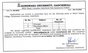 अर्ज करण्याचा पत्ता- कुलसचिव, गोंडवाना विद्यापीठ, गडचिरोली