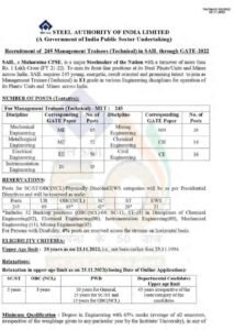 शैक्षणिक पात्रता- (i) 65% गुणांसह संबंधित विषयात इंजिनिरिंग पदवी. (ii) GATE 2022