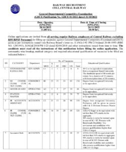 पदाचे नाव- लघुलेखक, SR COMML लिपिक कम TKT लिपिक, गुड्स गार्ड, स्टेशन मास्टर, JR लेखा सहाय्यक, JR COMML लिपिक CUM TKT लिपिक, लेखा लिपिक