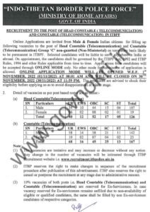 इंडो-तिबेट बॉर्डर पोलिस फोर्स(ITBP) अंतर्गत मोठी भरती