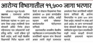 राज्यभरात आरोग्य विभागामध्ये परिचारिकांसह वेगवेगळ्या पदांच्या ११ हजार ५०० जागा रिक्त असून त्याविषयी येत्या सोमवारी अंतिम निर्णय होऊन महिनाभरात पात्र उमेदवारांची यादी प्रसिद्ध करीत भरती प्रक्रिया पूर्ण केली जाईल, अशी ग्वाही वैद्यकीय शिक्षणमंत्री गिरीश महाजन यांनी दिली.