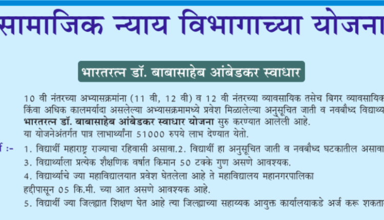 डॉ. बाबासाहेब आंबेडकर स्वाधार योजनेतंर्गत ११वी, १२वी, डिप्लोमा विद्यार्थ्यांना मिळणार ५१ हजार…