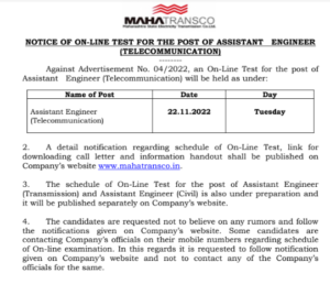 नोकरी विषयी महापारेषण मार्फत सहाय्यक अभियंता ऑनलाईन परीक्षा नवीन अपडेट By Chetan Patil On Nov 8, 2022 0 Share महापारेषण मार्फत Assistant Engineer ची जाहिरात आली होती. ज्यामध्ये Telecommunication Engineering Branch च्या उमेदवारांची परीक्षा ही 22 नोव्हेंबर ला होणार आहे. 0 Share FacebookTwitterGoogle+ReddItWhatsAppPinterestEmail