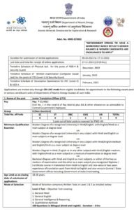 पदाचे नाव- कनिष्ठ अनुवाद अधिकारी, सहायक सुरक्षा अधिकारी, सुरक्षा रक्षक